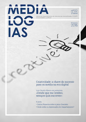 Com mais páginas e secções renovadas, o Nº 2 do Medialogias, o jornal do Departamento de Ciências da Comunicação (DCC), foi distribuído ontem, 10 de março, no final do penúltimo dia da Semana da Comunicação. Editado por Carla Rodrigues Cardoso, diretora da licenciatura em Comunicação e Jornalismo, o Medialogias Primavera 2016 inclui uma entrevista ao diretor do jornal e do DCC, Luís Cláudio Ribeiro, assim como um dossier de cinco páginas dedicado ao tema do ano letivo, Média e Jornalismo.